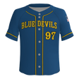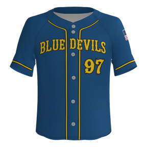 Blue Devils Full Button Pro Neck Short Sleeve Fitted Game Jersey